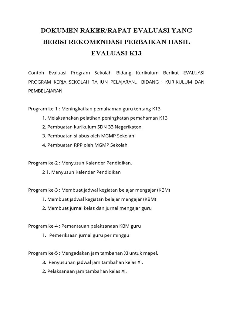 1 contoh evaluasi program sekolah bidang kurikulum berikut evaluasi program kerja sekolah tahun pelajaran.